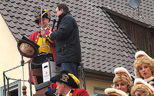 | Der Schlüssel ist nun übergeben und Ex-Bürgermeister Straub erbittet sich nun noch das Recht am öffentlichen Treiben mitmachen zu dürfen. | ||||