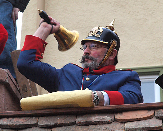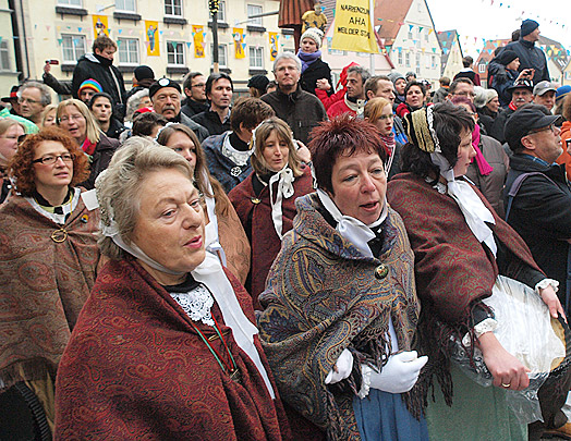 | Das Rathaus wird erstürmt und der Bürgermeister hat noch einen letzten Blick auf den vollen Marktplatz. | ||||
