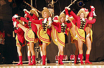 Mitglieder und unentbehrlichen Helfer. Eine kurze Schunkelrunde der Narrenkapelle unter Leitung von "Franz" heizte den Gästen ein und leitete zum "traditionellen" Marsch des AHA-Ballettes über. |