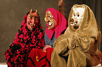 Die Holzmaske war geboren. Das obere Bild zeigt die Einlage der "Synchronschwimmer".