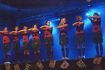 Mit dem traditionellen Marsch begann das eigentliche Programm, das sich aus verschiedenen Hochzeitsszenen in Vegas und mit Beiträgen der Gruppen abwechselte. | |||