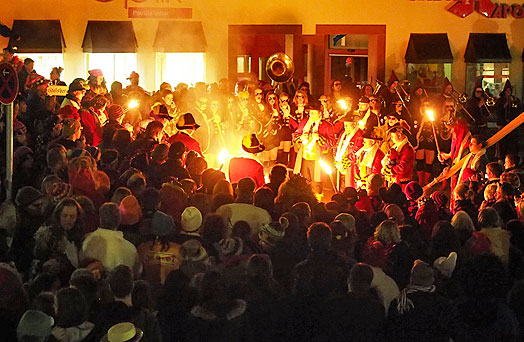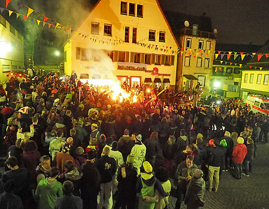Jeden Fasnetsdienstag wird um Mitternacht die Narrenfahne auf dem Marktplatz eingeholt.