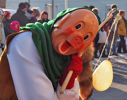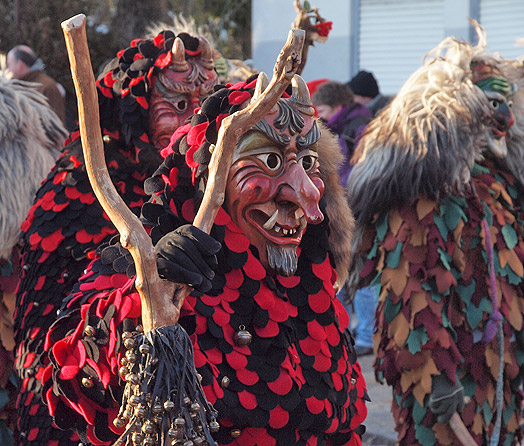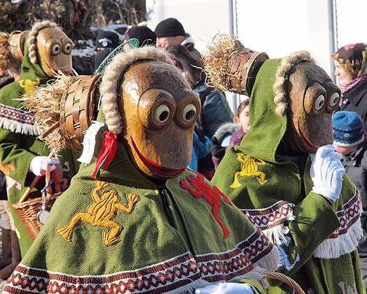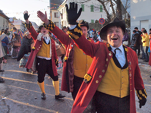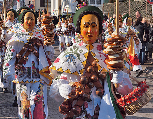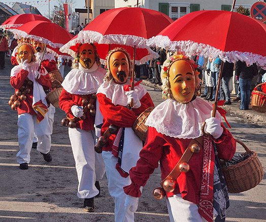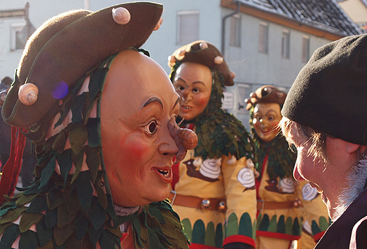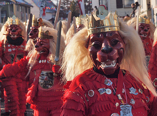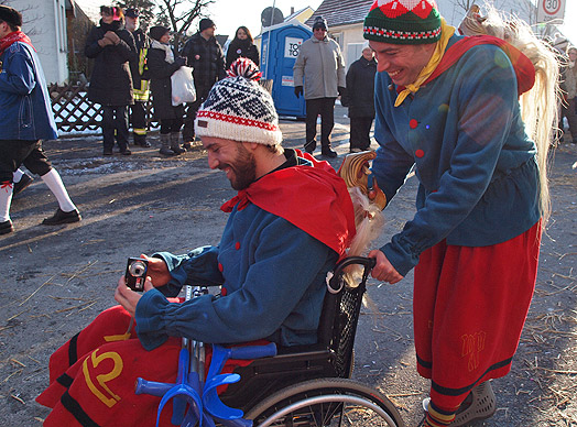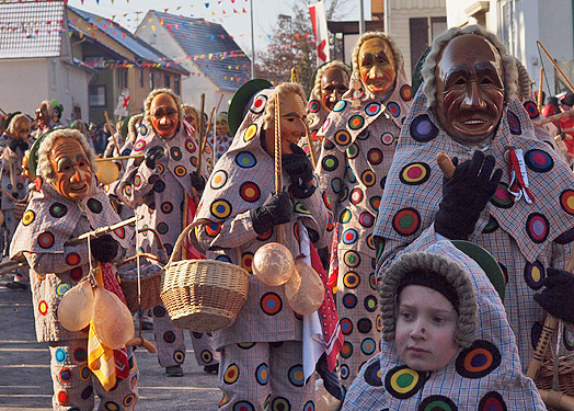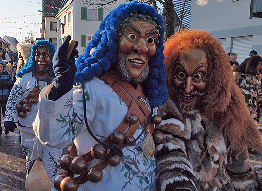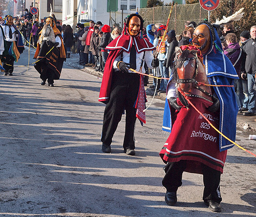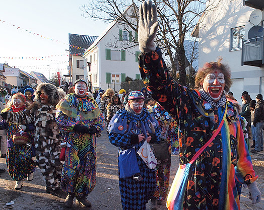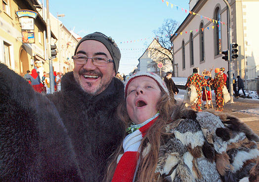 Fast zwanzig Grad Kälte hatte es in der Nacht auf diesen Sonntag, aber am Tag erwartete man nur zehn Grad Minus - aber Sonnenschein. So fuhren drei Busse der Narrenzunft-AHA zum 25. Ringtreffen des Narrenringes Oberer Neckar nach Bochingen, das bei Oberndorf liegt. Das Ortsinnere war liebevoll mit Fahnen und Wimpeln geschmückt und man hatte sich auf das viertägige Fest bestens vorbereitet. |