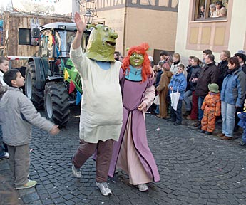 Shrek persönlich beim Weil der Städter Kinderumzug .. | .. auch der Esel war dabei | |||