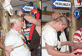 ![]() .. banden sie an den Marterpfahl und begannen, die Haare abzuschneiden. |