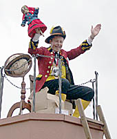 Herold mit Wappen | Er schellt so laut er schellen kann und führt stets unseren Umzug am. | ||
