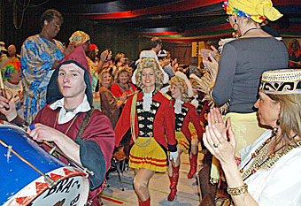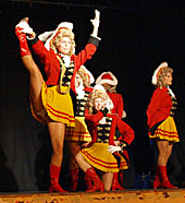 Der folgende Hexentanz war der Höhepunkt des Programmes. Auf der Bühne tanzte zunächst eine Gruppe Hexen, bis aus dem Publikum eine weitere Gruppe auf die Bühne stürmte. Gewagte Sprünge über eine Pyramide aus Hexen begeisterten das Publikum, bis die Zugabe sicher war. |