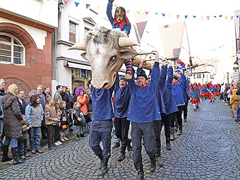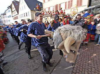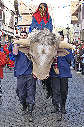 Mit brachialer "Ochsen"-Kraft wird die Tür gerammt... | ... und die Narren plündern | |||||||||