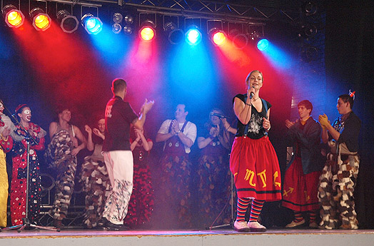 Die Zigeunergruppe führt einen Bollynoamericano auf. Die Musik wechselt zwischen bekannten europäischen Zigeunerklängen und indischen Einflüssen. | ||||
