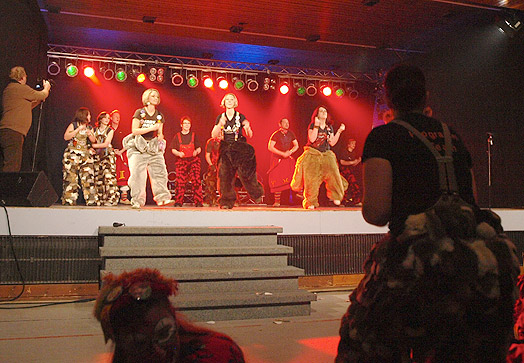 Dann folgt der Flashmob, der im Internet angekündigt wurde. Auf diese Nachricht trafen sich fast vierzig Mittänzer und führen diesen Tanz gemeinsam vor. Auf die Ankündigungsseite im Internet hatten über 1800 Gäste zugegriffen. Super Idee! |