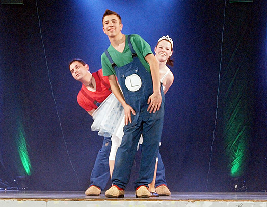 Das weltbekannte Gameboyspiel "Super Mario" wird von Tobias Reim und seiner Gruppe inszeniert. | ||||