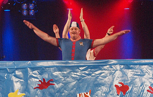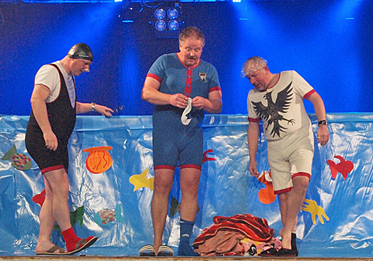 Die aktuellen und früheren Steckentälerbosse verwandeln die Bühne zum Ozean und versuchen sich im Synchronschwimmen ..... | ||||