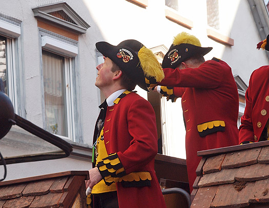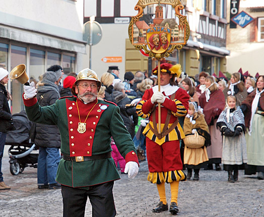 Büttel und Herold kündigen den Umzug an. | |||||||||