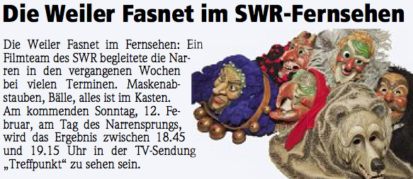 Fasnet im 3. Programm: 12.02.2012 18.45 Uhr