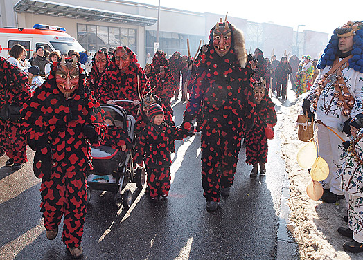Königswetter am Fasnetsdienstag! Nachdem es nachts fast 10 Grad Kälte hatte erhellte sich der Himmel. Mittags wärmte die Sonne und bei fast 5 Grad plus strömten die Narren für die zahlreichen Kinder durch die Stadt. Achtung: Bitte klicken Sie am Ende der Seite auf "weiter zu Seite 2" |