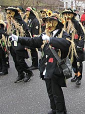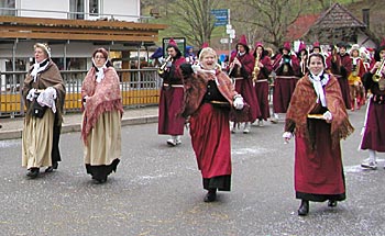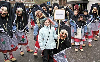 Schon unterwegs überraschte der viele Schnee, aber das Wetter hielt sich tapfer trocken. In Bad Griesbach feierte man das 22-jährige Bestehen der dortigen Narrenzunft. 52 Zünfte mit über 2500 Maskenträgern nahmen am Umzug teil. |