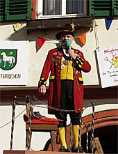 Mit einer langen Liste von Versäumnissen und Fehlern überzeugte Dieter I. die Narren, dass die Regierung Hanns-Josef Straub gestürtzt werden müsse und gab Befehl zum Beschuss des Rathauses. Anschließend stürmten die Narren das Rathaus und brachten den gefesselten Bürgermeister herab. Zehn Tage geht nun die Gewalt an die Narren über. |