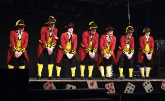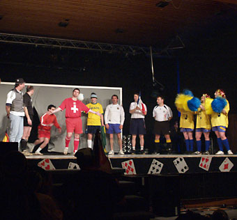 Wie jedes Jahr konnten wir zum kräftigen Schlachtruf "Tipp-Kick" eine Gastzunft begrüßen. Präsident Franz I. kam mit dem Prinzen Rahn und Prinzessin Prinz und seinem Fußballballett und einer riesigen Fangruppe. | ||||
