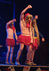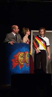 WWW-Aufmarsch. Der Siebenerrat marschiert scheinbar zufällig zur Musik auf die Bühne. | Die Moderatoren passen sich an | |||