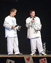 Zunftmeister Michel begrüßte zuerst die Ehrengäste und die Ehrenmitglieder. Danach ehrte er die Mitglieder der "Stadtdekoration", die in unermüdlicher Arbeit die farbigen Girlanden und die schmucken Puppen aufhängen und so unserer Stadt das richtige Fasnetsflair verpassen. Ein weiter Dank galt der "Puppengruppe", die jedes Jahr neue Fasnetspuppen kreiert. Die umfangreichste Ordensverleihung galt den zahlreichen Wagenbauern, ohne deren zeitaufwändigen Einsatz der Umzug gar nicht zustande käme. Jung und Alt trifft sich mehrmals in der Woche im "Spittel" und baut die einzigartigen Wagen, die unseren Umzug zu etwas Besonderem machen. Nach der obligatorischen Schunkelrunde begann dann das eigentliche Programm. |