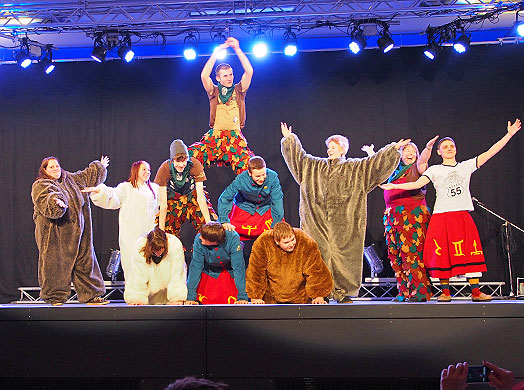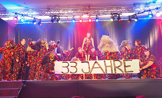 Den nächsten Programmpunkt präsentierte die diesjährige Jubiläumsgruppe Steckentäler mit dem Thema "Tanz Battle". Die Variation von Tänzen endete in einer Pyramide.