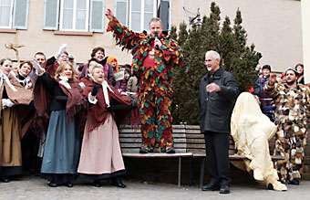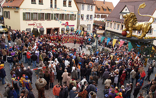 Als letzte Erweiterung des Narrenbrunnens wurde 2006 nach dem Narrensprung als neue Figur ein Schelm enthüllt. Vor 20 Jahren hatte Gerhard Längerer der Zunft ein Modell mit der kleinen Hexe vorgestellt und wollte so dem Speidelsberg "Leben" einhauchen. Es ist ihm mit Sicherheit auch gelungen: Aus einem tristen Parkplatz wurde ein einmaliger Narrenbrunnen, der zahlreiche Besucher aus aller Welt anlockt. |