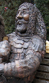 Der Künstler Gerhard Längerer erläuterte nochmals seine Idee, den Brunnen zu gestalten. Über die Jahre sind es nun 14 Figuren geworden. Da er in Rente geht, wird der Schelm die letzte Figur des Gesamtkunstwerkes sein. Der lustige Schelm sitzt auf einer Holzbank am oberen Ende des Speidelberges und lädt Gäste auf seine Bank ein. |