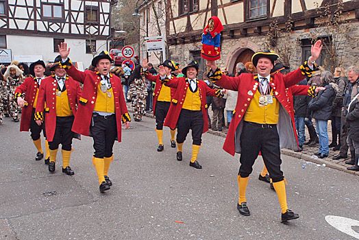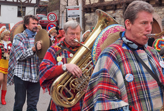 Schon traditionell begleitet die alte Narrenkapelle die Rosenmontagsausfahrt | ||||