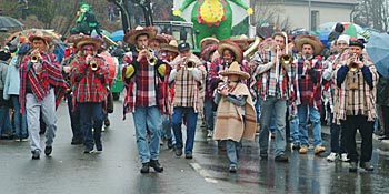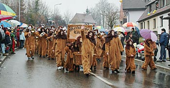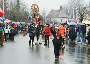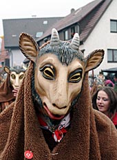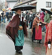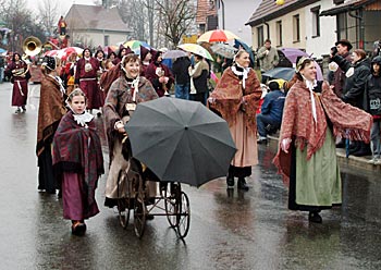 Der Umzug startete pünktlich um 14.00 Uhr bei der Wendelinskapelle und bewegte sich in bewährter Weise entlang der jubelnden Menge erst zum Marktplatz, dann die Stuttgarter Straße hinaus bis zur Würmbrücke, entlang der Stadtmauer zur Paul-Reuschstraße, die Grabenstraße hinunter bis zur Herrenbergerstraße und zum Abschluss wieder auf den Marktplatz. |
