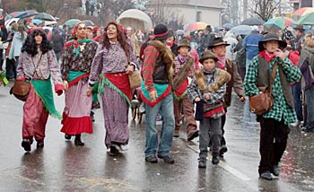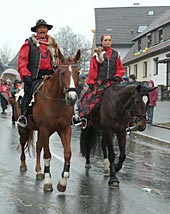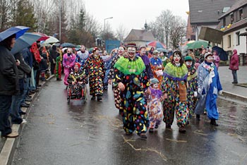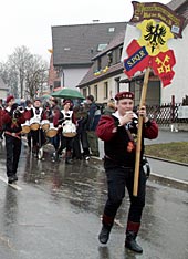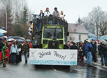 Zunftmeister Michl dankte noch allen Aktiven, dem Kommentator des Umzuges Dieter Ölschläger, den Wagenbauern, den Gruppen, den Musikkapellen, dem Roten Kreuz, der Feuerwehr, allen unsichtbaren Helfern und vor allem dem tapferen Publikum, das trotz schwierigen Wetters bis zum Schluss durchhielt. | |||