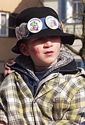 Dann startete um 14.00 Uhr der richtige Umzug vom ehemaligen Spitalgebäude aus. Allen voran Büttel und Herold mit dem neuen prächtigen Zunftwappen. | ||||