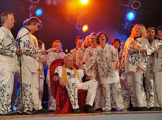 Eine lange Schunkelrunde mit der Narrenkapelle folgt dem sehr abwechslungsreichen Programm. |