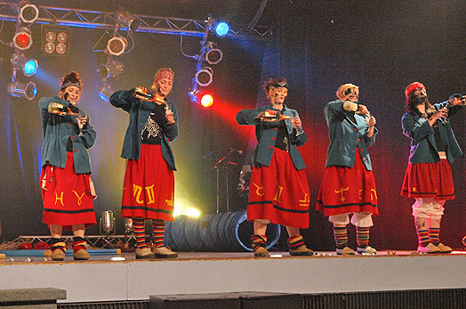 Die Hexendamen führten ein "Fasnetstraining" vor, welches Konditionstraining, Tanz, Geschicklichkeit und - last, but not least - Sektflaschen öffnen und Sekt trinken verband. | Der Film dazu | ![]() |