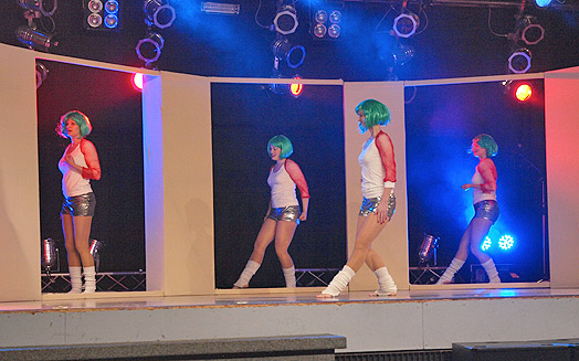 Zur Musik T-Pain and Fow-Rida „Low“ sehen Sie einen Tanz der aussergewöhnlichen Art. Eine Tänzerin tanzt vor dem Spiegel, man sieht in den Spiegeln ihr Spiegelbild und bemerkt dann, dass gar kein Glas in den Spiegeln war. Eine klasse Nummer mit nicht enden wollendem Beifall und einer Zugabe. |