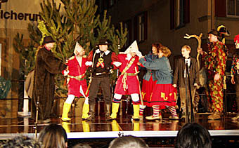 dem Marktplatz ein. Die Geschichte spielt - frei nach dem Original - in fünf Szenen mitten in der Narrenwelt. |