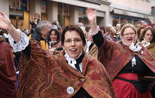Trotz schlechter Wettervorhersage war es trocken und einige blaue Stellen am Himmel zeigten, dass uns Petrus wohlgesonnen war. So säumten 8724 Zuschauer und 127 Fenstergucker den Umzugsweg. |