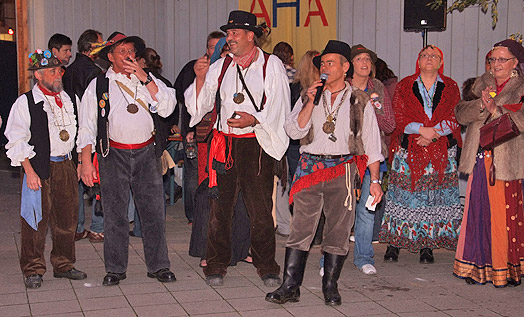 Zum Tanz spielte Ralf Armbruster auf. Gegen zehn Uhr öffneten dann die Alibabar und die Kellerbär. Alle, die im Freien schon leicht fröstelten, zog es schnell in die beiden warmen Bars (denn viel Leut geben viel warm). Während es in der sandigen und orientalisch anmutenden Alibabar diverse Drinks gab, konnte man in der Kellerbär mit Sekt anstoßen. |