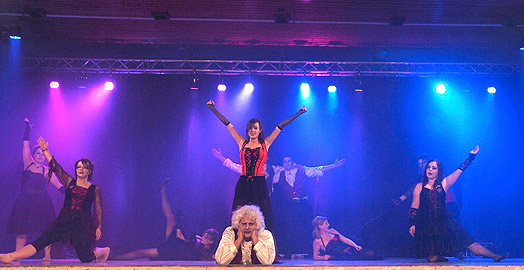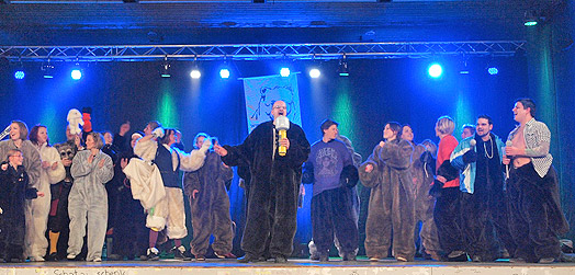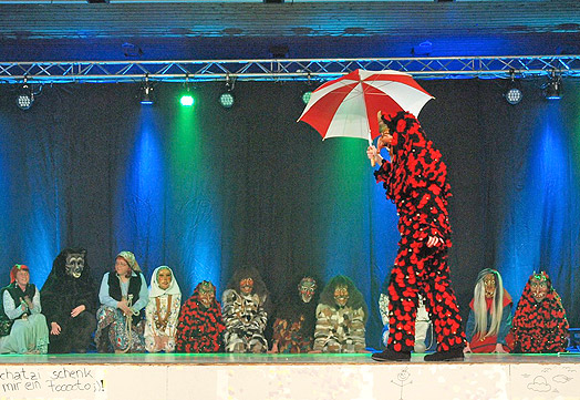 Eine Gruppe, bestehend aus Clowns und Schelmen, führte das Programm mit einem Lied aus dem Musical "Tanz der Vampire" fort. | ||||