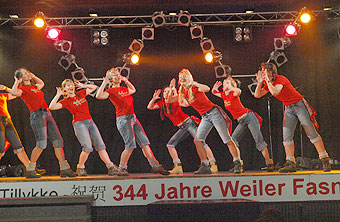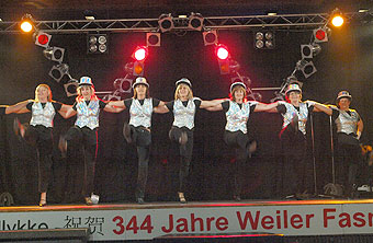 Dann begann der absolute Höhepunkt des Abends: 4 Jahrzehnte AHA-Ballett! Zwar kamen die Ältesten Balletteusen erst mit Gehhilfen auf die Bühne, doch das änderte sich schnell und flugs hoben die Damen ihre Beine fast so schnell, wie die jüngsten. |