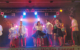 Die Schelme führten dann unter "Schwarzlicht" einen Becherrap vor. Gekonnt synchron bewegten sie farbige Becher und erzeugten mit dem Aufschlagen der Becher die Melodie. | |||